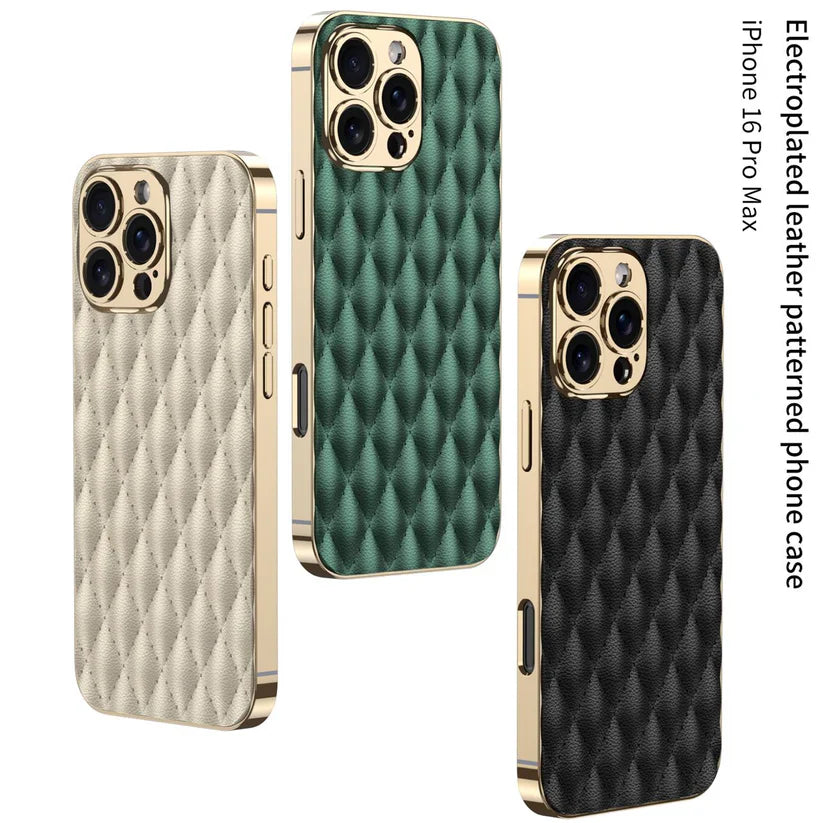 Electroplated Rhombus Pattern Leather Phone Case- iPhone
